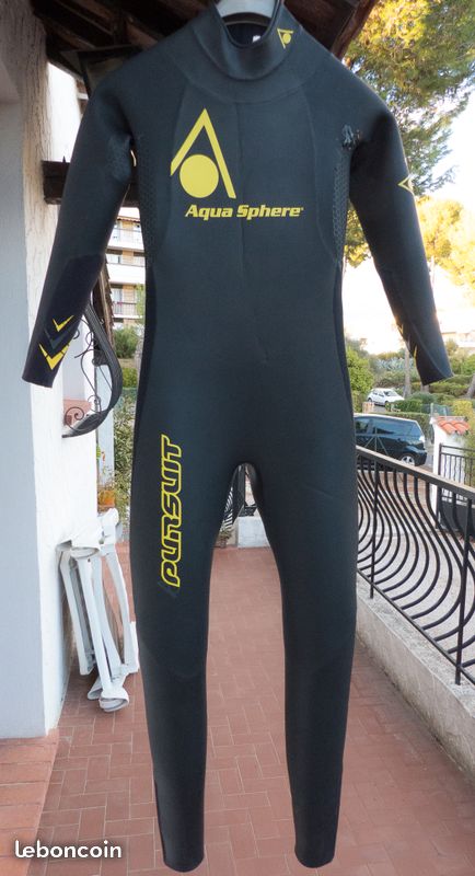Vend combinaison marque Aqua Sphere, il a un peu de fuite mais avec un néoprène (vois 3eme photo) en dessous ca marche tres bien. Etat tres bon, j'ai achete en occasion mais utlise seulement 4 fois (3 a l'entrainement et 1 au comptetion de triathlon) Taille S, je fais 1h69 et 60kg