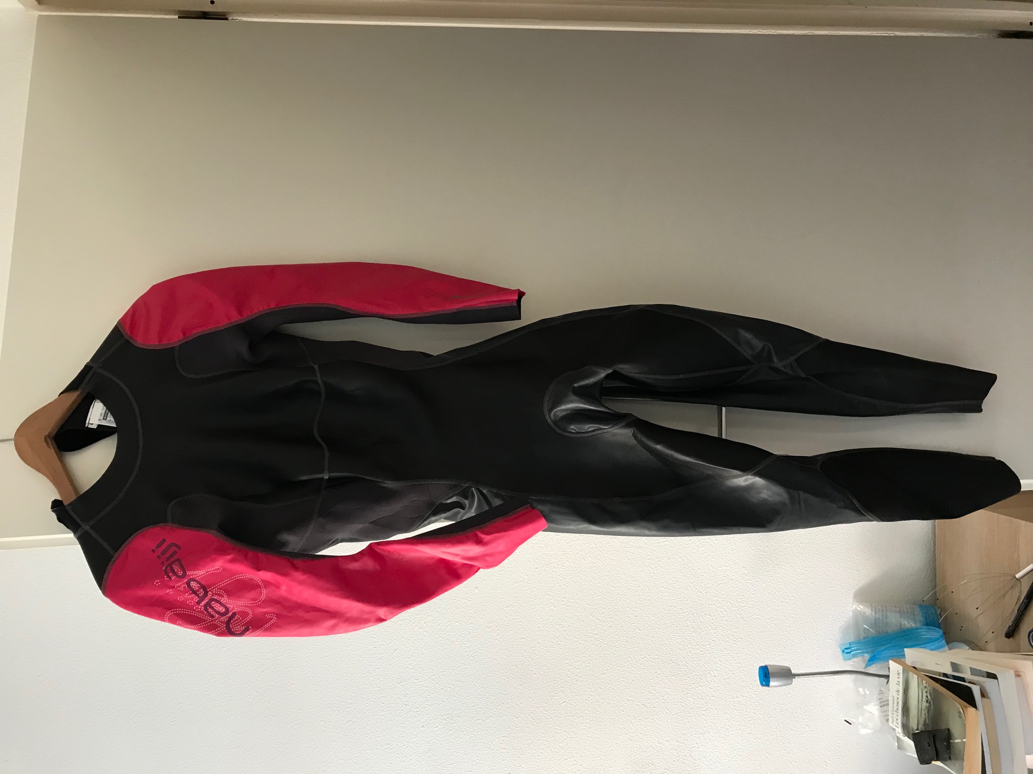 Vends combinaison de natation t40-42 neoprene de marque décathlon 92-95cm Utilisée pour 3 triathlons. Manches et jambes couvertes Épaisseur 1/0mm Nage en eau libre