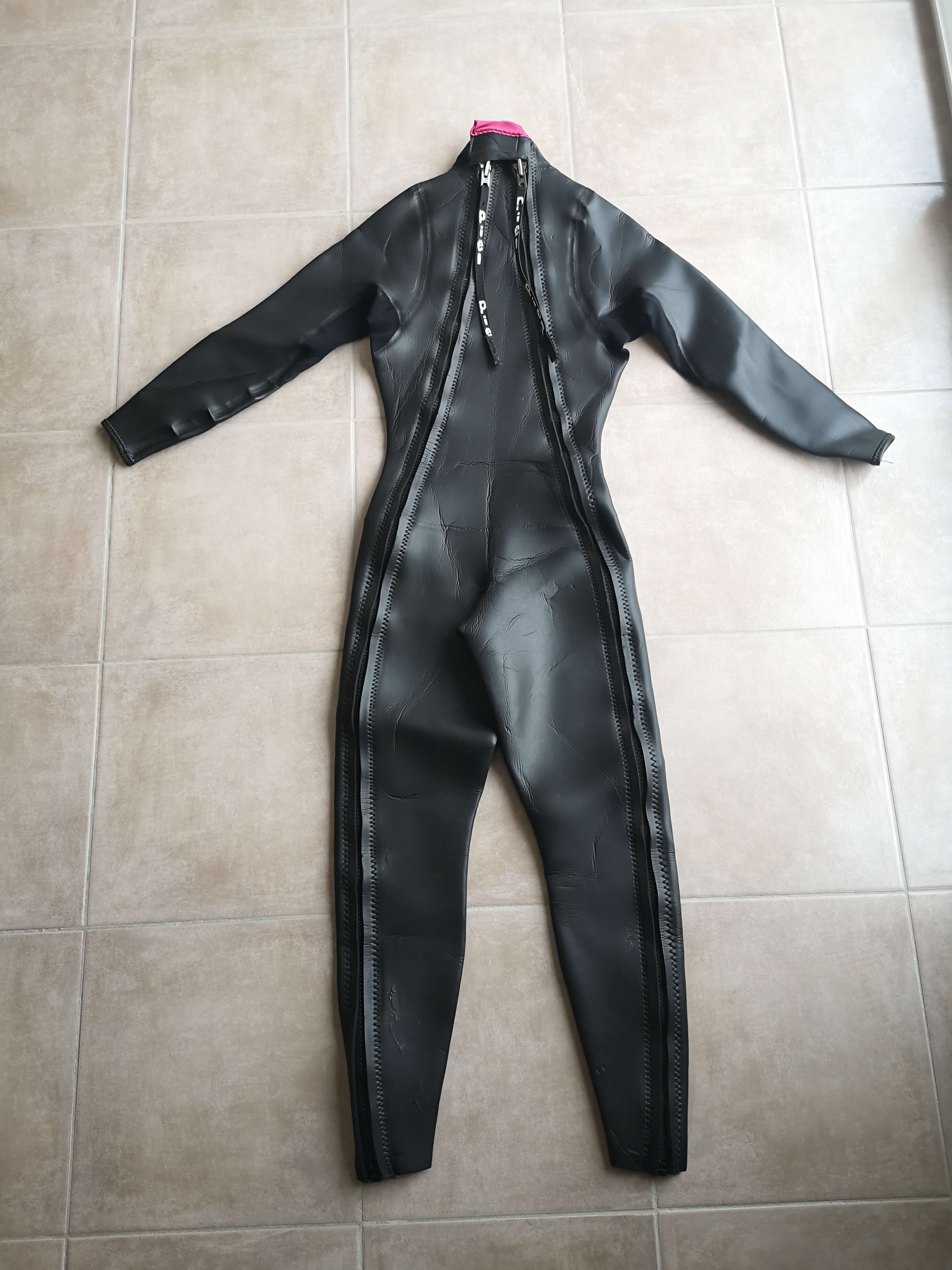 Bonjour, je vends ma combinaison de triathlon de la marque Piel, en très bon état, car je n'en ai plus l'utilité. Néoprène 3 mm : légèrement abîmé sur le mollet gauche à cause de plusieurs coups d'ongle mais réparé avec de la colle spécifique néoprène (voir photo). Taille M pour 1,80 m environ et 60 à 70 kg. Double ouverture zippée des chevilles au cou ce qui permet des transitions rapides et faciles. Le prix est fixé à 80€. Envoi possible à vos frais.