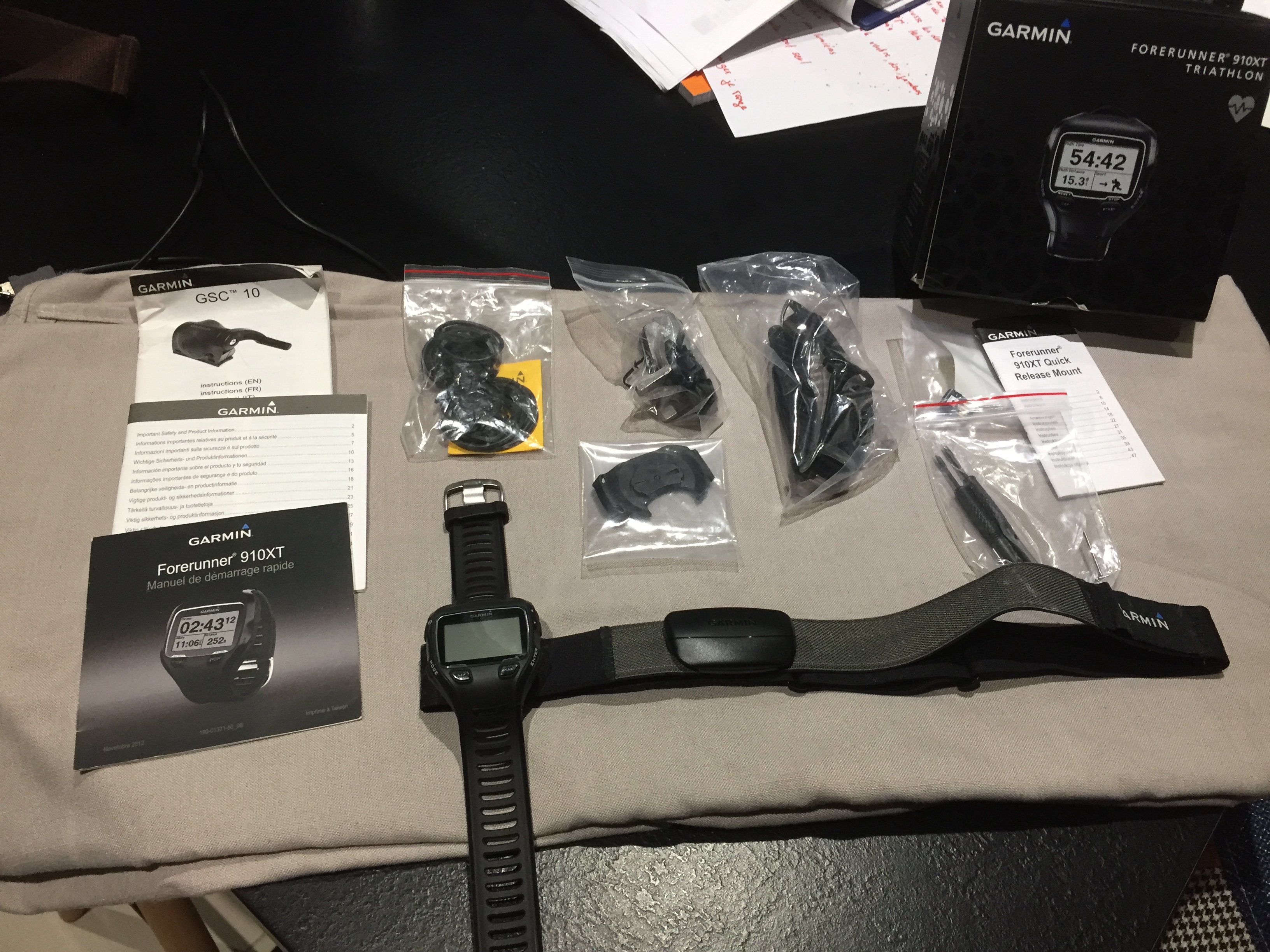 Bonjour Je vends ma Garmin forerunner 910XT Très bon état 2 bracelets de montre Ceinture pour le cardio Et quelques accessoires 100€ discutable