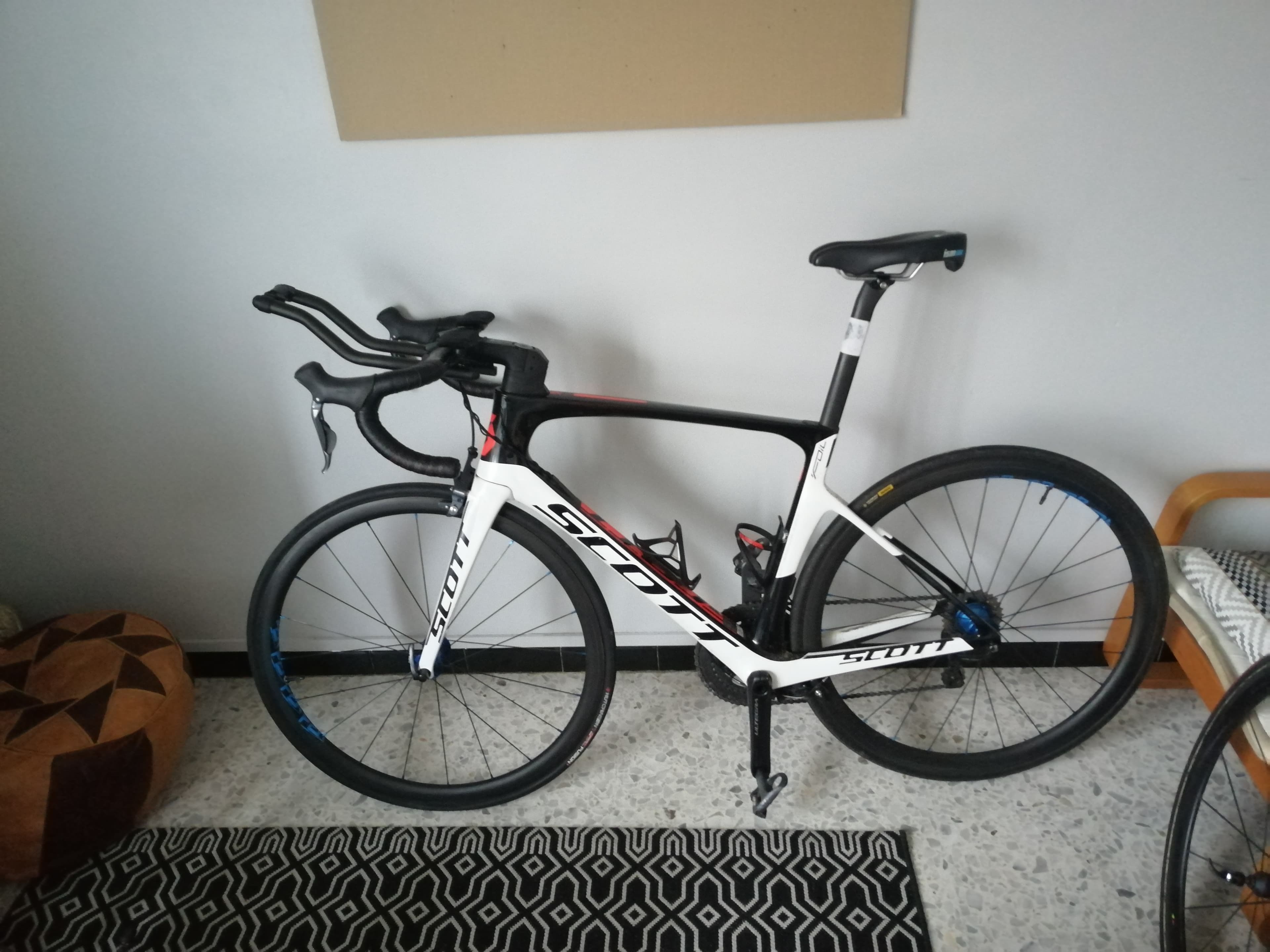 Scott Foil 30 taille 54 Bonjour à tous, je me sépare de mon fidèle destrier acheté neuf en Novembre 2016. J'ai effectué 3 241 km et 10 triathlons. Il n'est jamais tombé et toujours entretenu, avec une révision effectuée avant chaque course donc au moins 4 fois par an. 2 types de vente : Vélo sans roue = 1 800 € Vélo avec les roues artisanal = 2 700 € Avec : Roue ARTISANAL 2019 tubeless monté sur le vélo : valeur neuve 1900 € Groupe Shimano Ultegra DI2 : valeur neuf 1500 € Cintre Synchro plus prolongateur Synchro : valeur neuf 1000 € Cadre vélo Scott Foil valeur neuf : 1500€. La selle sera celle du Foil et non celle sur la photo.