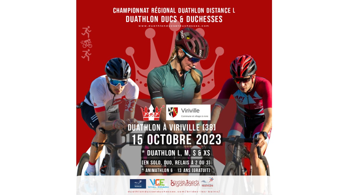 Le Duathlon : Duathlon Ducs et Duchesses Viriville se déroule le 15/10/2023 dans la ville de Viriville (ISERE). Retrouvez ici toutes les informations nécessaires pour bien se préparer et participer à ce Duathlon.