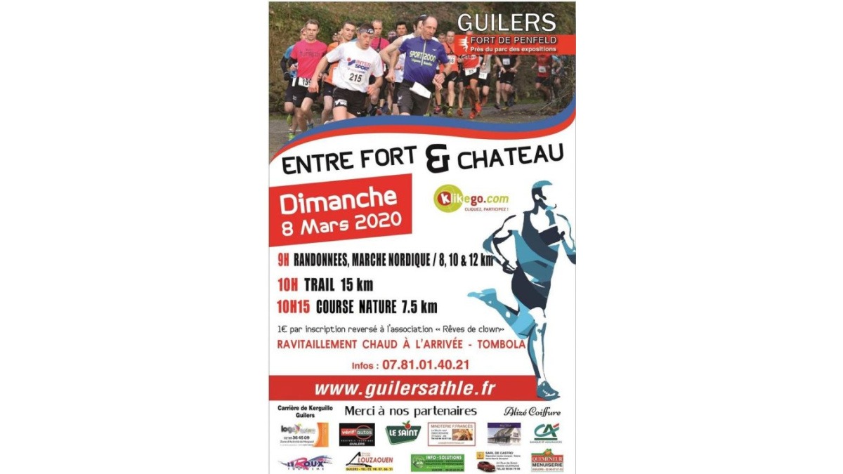 Le Trail : Entre Fort et Château se déroule le 08/03/2020 dans la ville de Guilers (FINISTERE). Retrouvez ici toutes les informations nécessaires pour bien se préparer et participer à ce Trail.