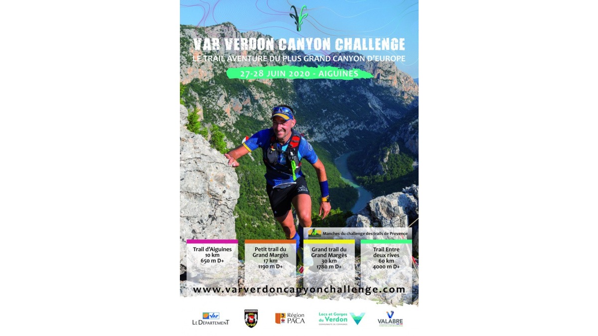 Le Var Verdon Canyon Challenge (VVCC) est une des courses pionnières du trail en France qui se déroule dans le Verdon en Haute Provence depuis le village d’Aiguines. Toujours 4 courses au programme en 2020, le Trail Entre Deux Rives propose un parcours exigeant de 60 km et 4000 m D+ qui emprunte notamment le célèbre sentier Blanc Martel, le Grand Trail du Grand Margès offre un tracé de 30 km et 1800 m D+ qui offre un condensé du grand avec de superbes passages sur les crêtes et le sommet du Grand Margès, le Petit Trail du Grand Margès propose un format court mais éprouvant de 17 km et 1200 m D+, et enfin le Trail d’Aiguines est un trail découverte de 10 km et presque 700 m D+. Les parcours sont certifiés ITRA. 2 épreuves figurent au calendrier du Challenge des Trails de Provence.